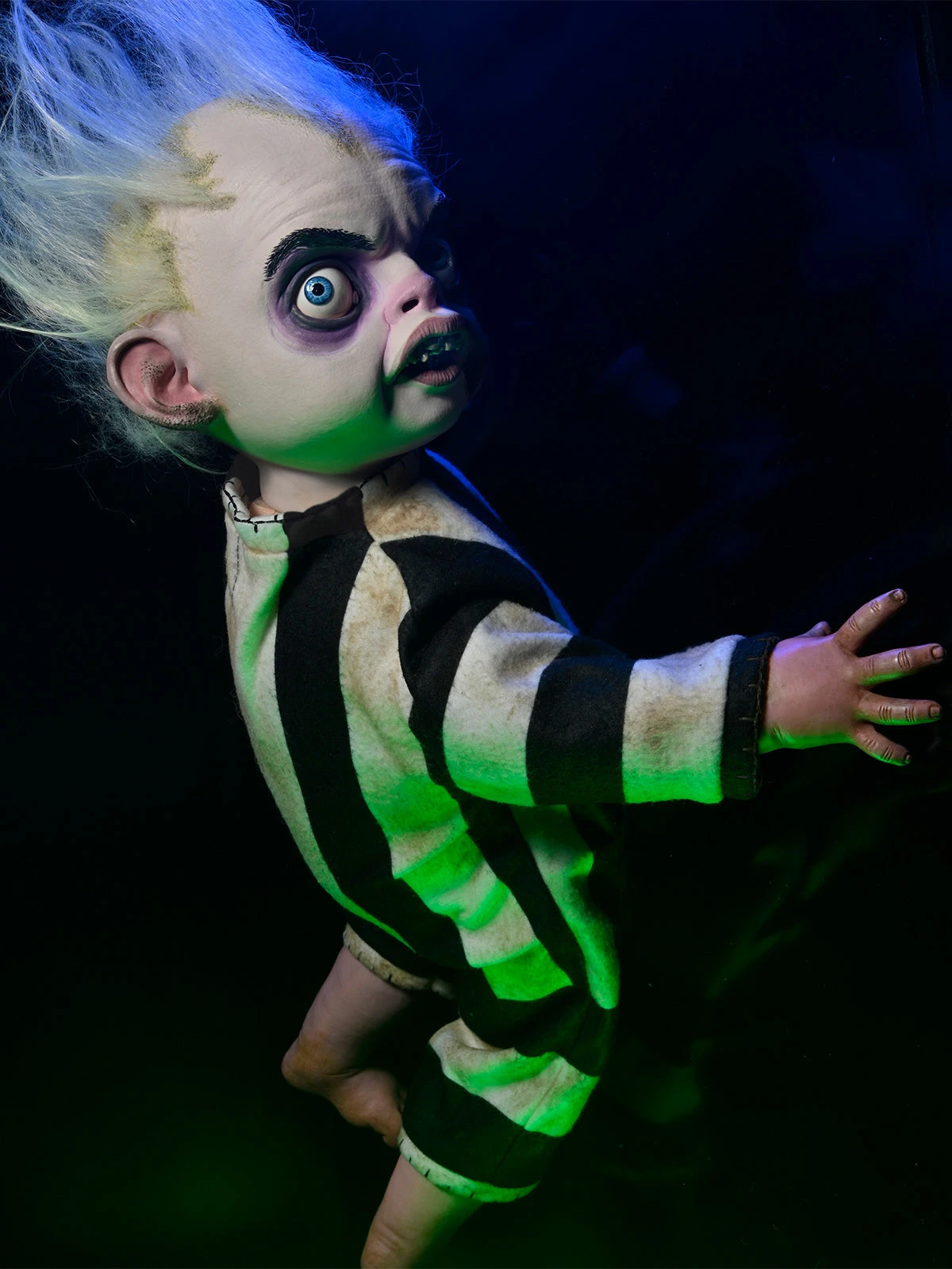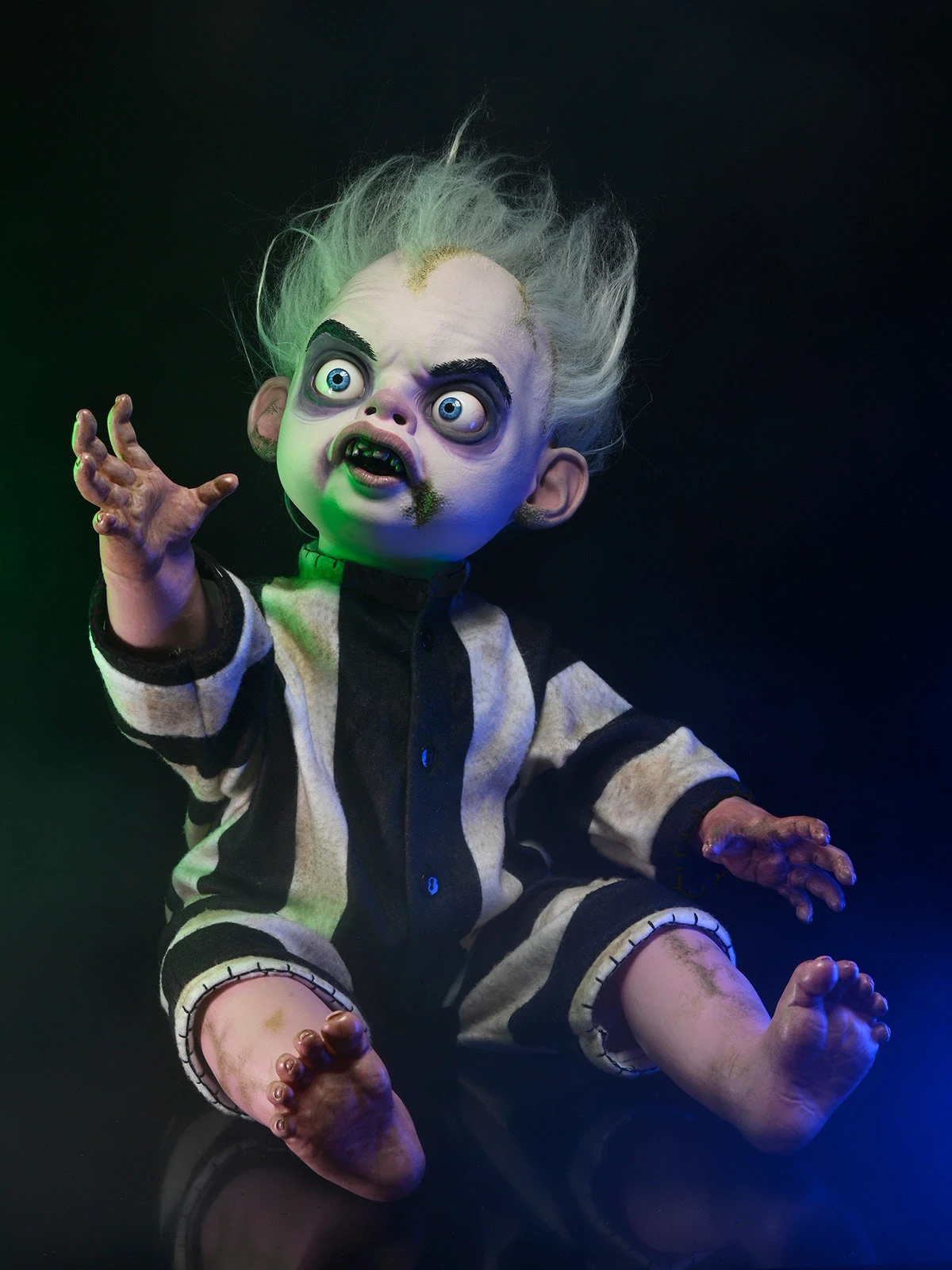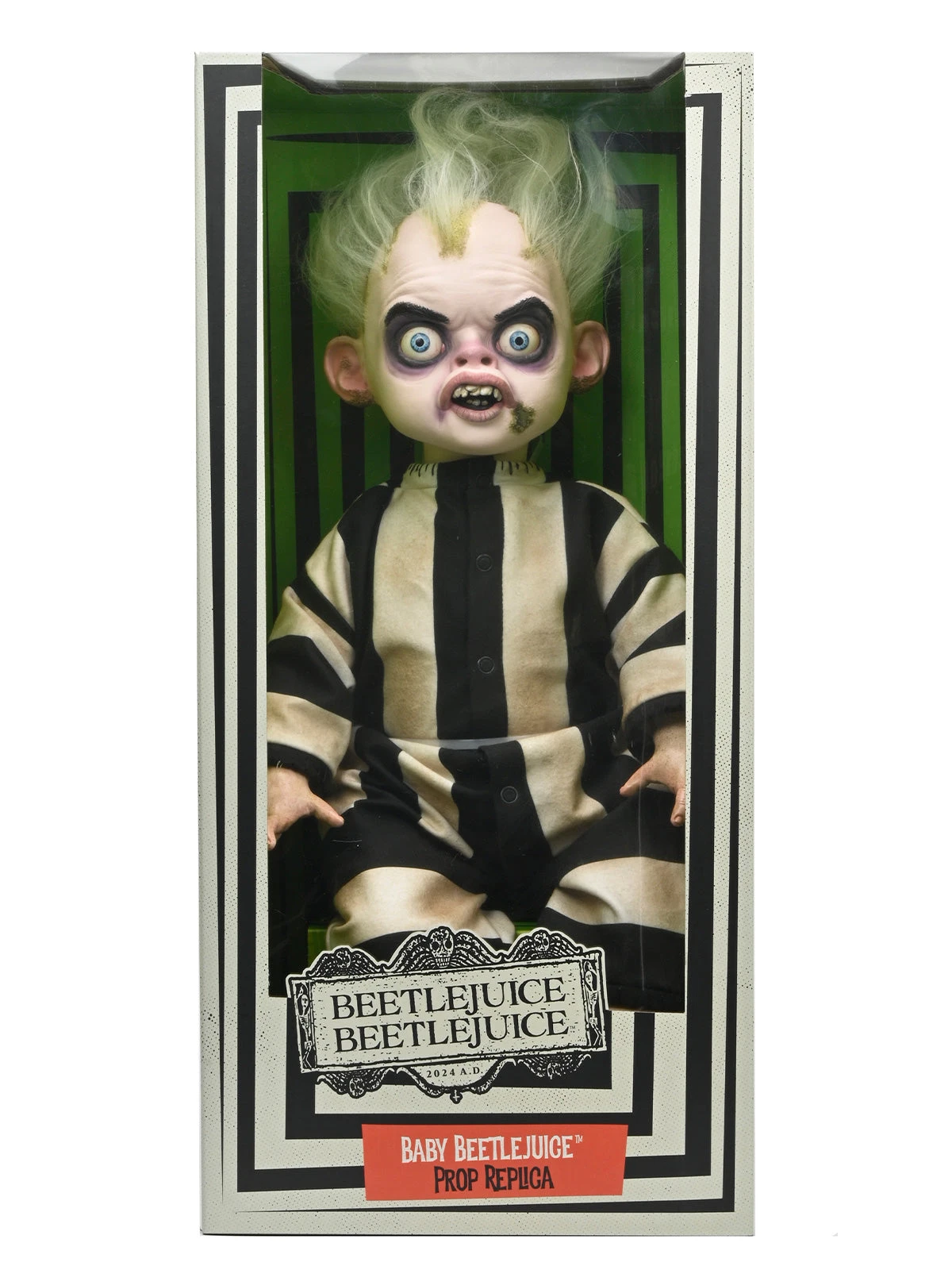 The juice is loose! Birthed from the mind of director Tim Burton, the Beetlejuice Baby is here! Own a life-size replica doll of the breakout character from the 2024 film Beetlejuice Beetlejuice. This 1:1 doll is based on Baby Beetlejuice’s on-screen appearance and has been exactingly duplicated.