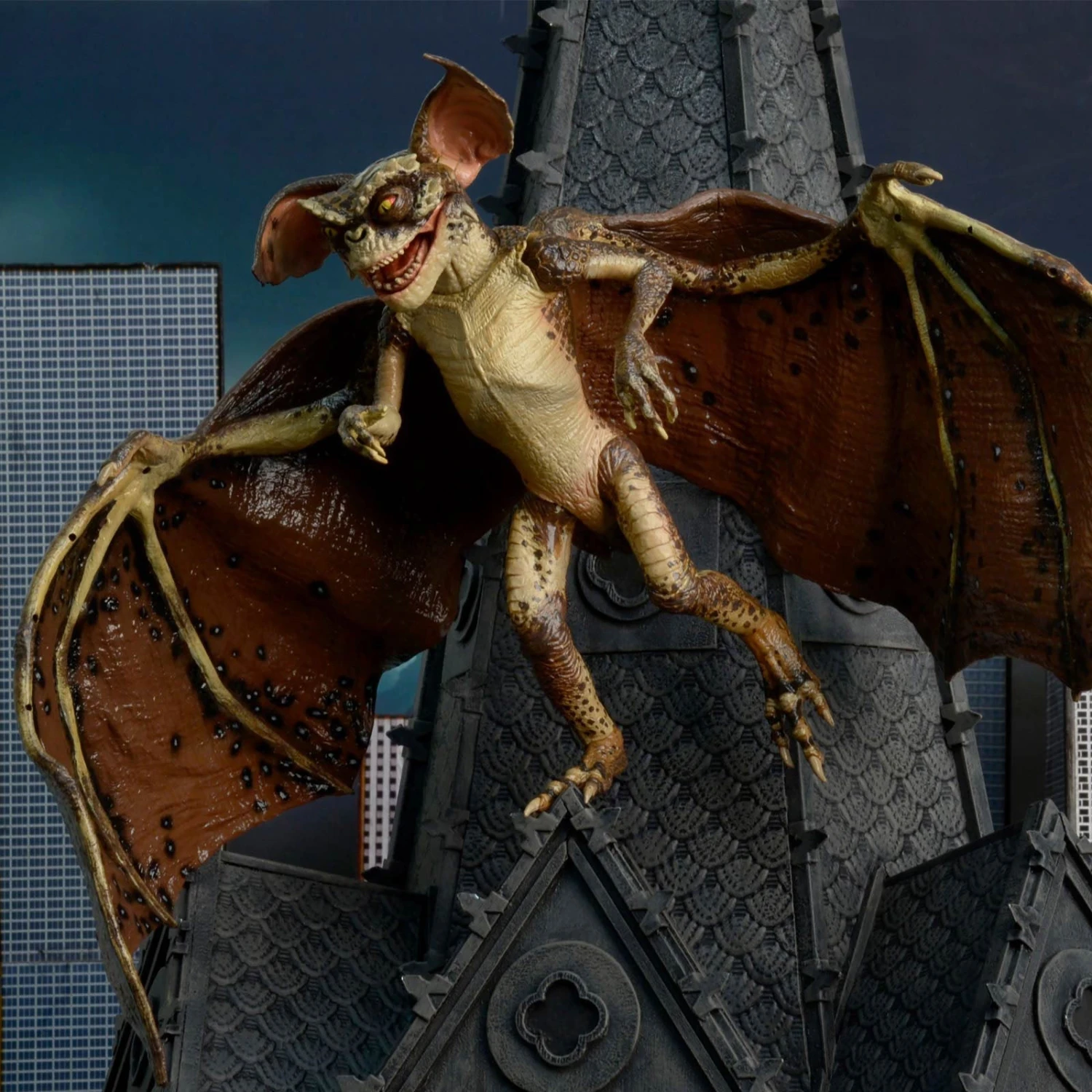 One of the most requested Gremlins figures of all time! From Gremlins 2: The New Batch comes the spectacular Bat Gremlin, with a massive wingspan of nearly 18 inches. This detailed re-creation of the puppet seen in Gremlins 2 is fully articulated, including hinged ears, hinged jaw, and jointed arms that allow the wings to spread open and fold close!