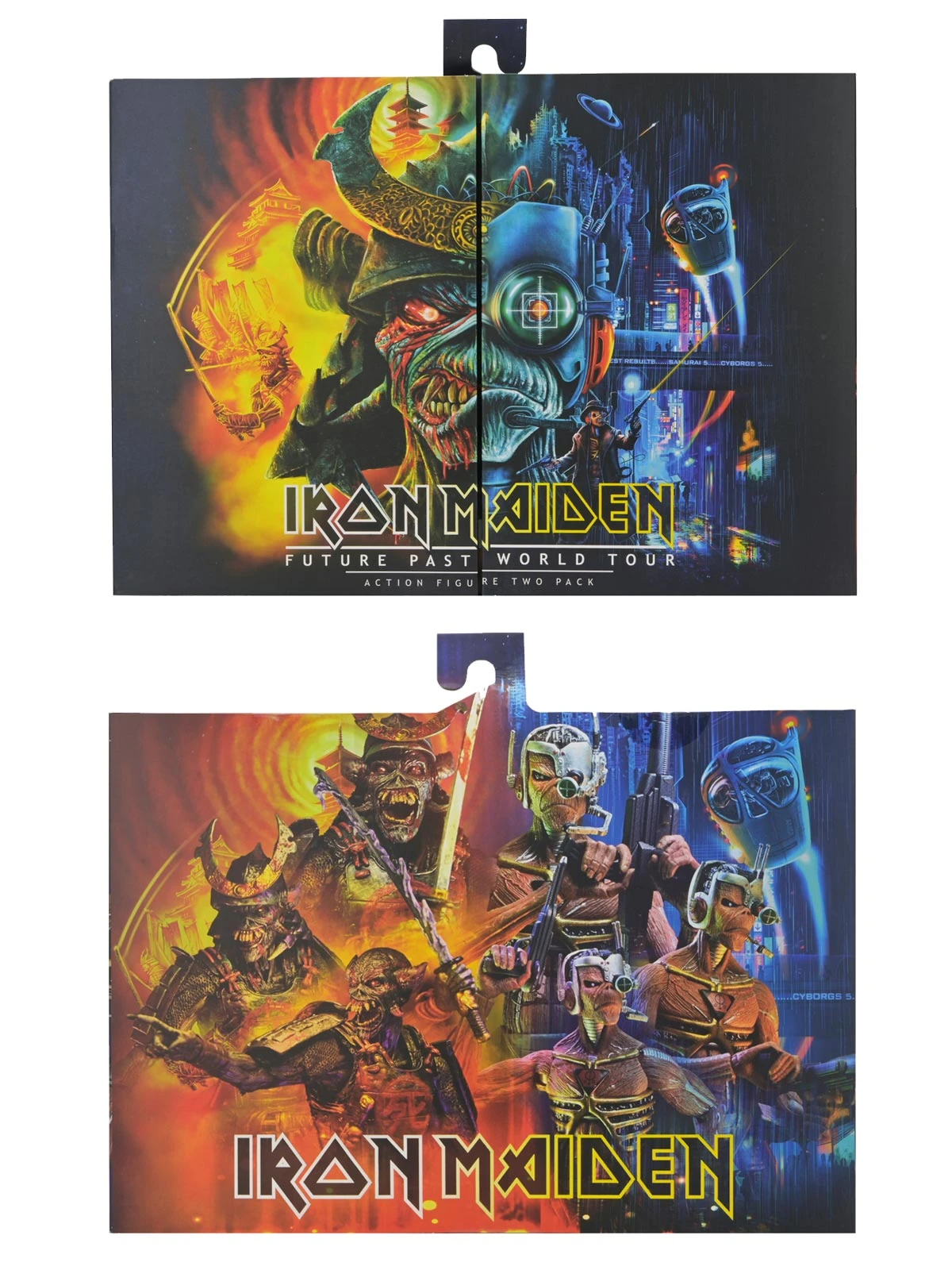 Attention, metalheads! Celebrate Iron Maiden’s Future Past World Tour with their iconic heavy metal mascot, Eddie – twin pack! Since 1980, Eddie has adorned the band’s legendary album covers. This NECA Ultimate action figure 2-pack pays tribute to Eddie in two forms! Samurai Eddie comes straight from the 2021 SENJUTSU album cover, featuring armor-clad Eddie from the past. Cyborg Eddie is based on the futuristic cover art from the classic 1986 album SOMEWHERE IN TIME