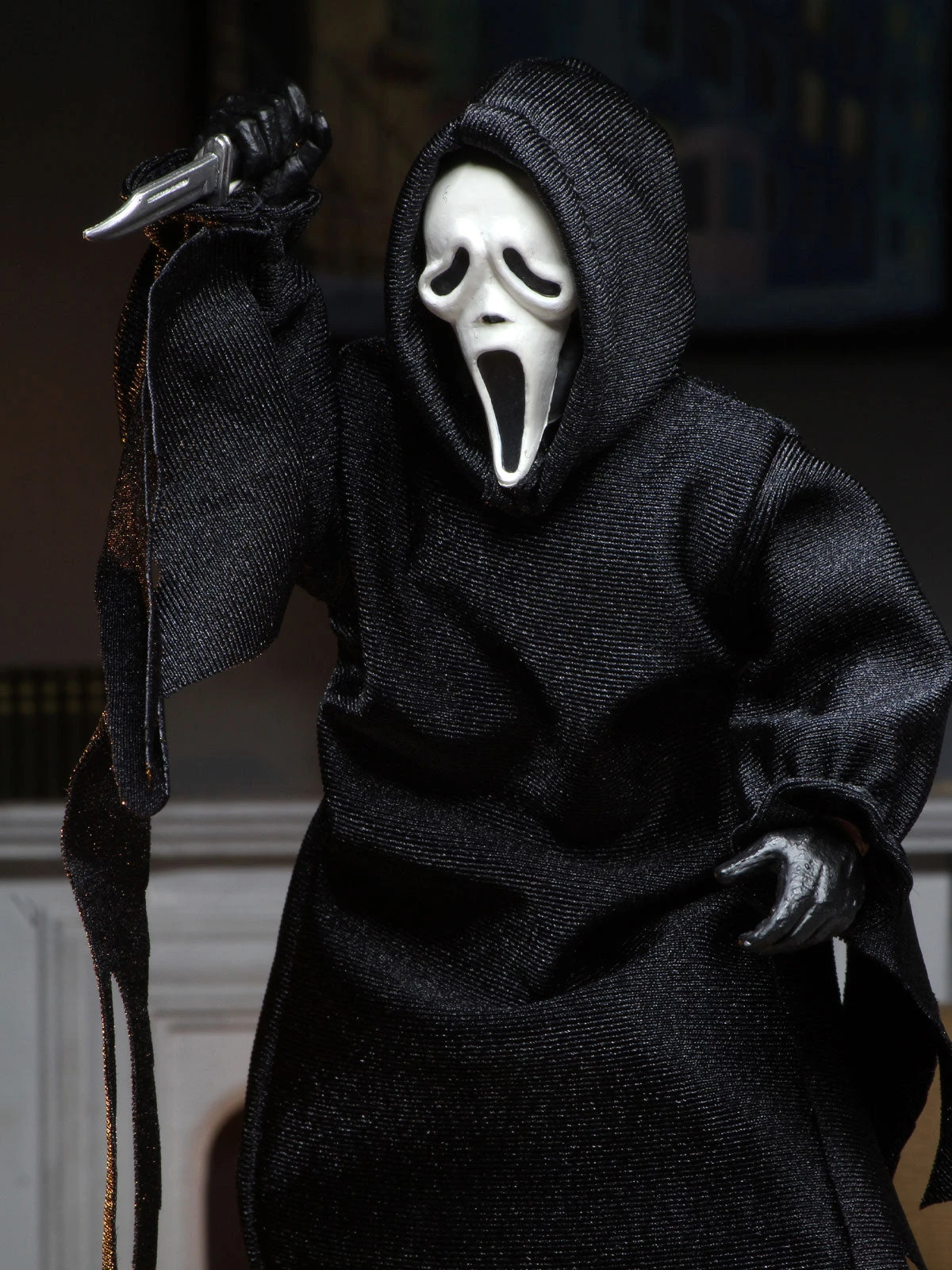 - 8″ scale action figure of Ghost Face from “Scream!”