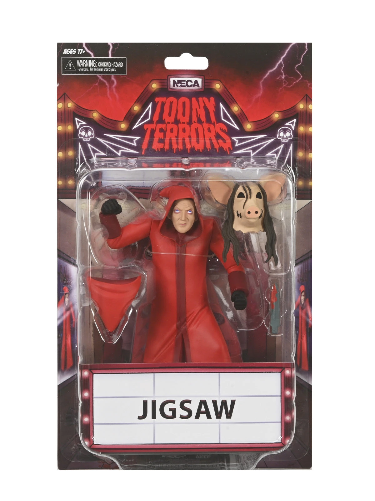 Bring the fun of Saturday morning cartoons to your horror collection with the adorable little creeps of Toony Terrors, NECA’s line of stylized horror icons! Standing approximately 6 inches tall, this Jigsaw Killer from the SAW Horror movies features his blood red robe!