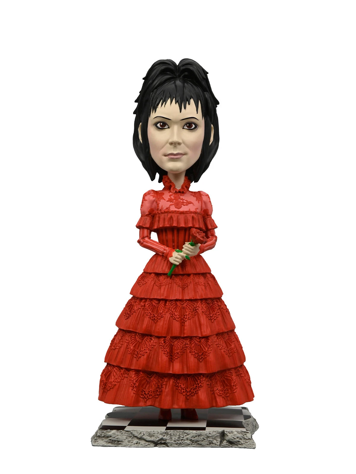 - Lydia Deetz, dressed in her red wedding dress, making her a colorful, collectible piece for any Beetlejuice fan