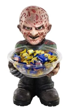 “Don’t Go to Sleep!” Defy sleep or risk a visit from Freddy Kreuger himself, protagonist of the 1984 horror movie “A Nightmare on Elm Street”. A severely burnt serial killer, Freddy uses a gloved arm with razors to kill his victims in their dreams, causing their deaths in the real world as well. Appearing in movies, TV series like “Freddy’s Nightmares”, video games and comics, Freddy is known for his disfigured face, red-and-green striped sweater, brown fedora, and that metal-clawed brown leather glove, made for murder. He is a pop culture icon who depicts true Horror. On Halloween, why not throw all your lollies into this candy bowl? Who knows what creatures will stop by..