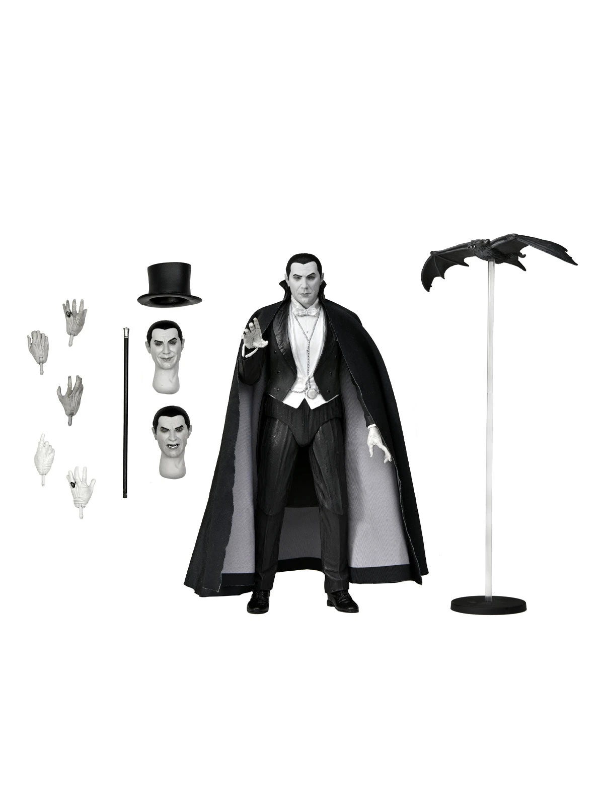 NECA announces a new Ultimate action figure of the most famous vampire of them all… Count Dracula! Following the colour version, NECA has created a special black-and-white figure that features the formal tuxedo seen at his estate, Carfax Abbey. They worked closely with the estate of Bela Lugosi to capture the actor’s expressive likeness and for additional background detail on important costume elements. Standing in 7” scale, the Ultimate Dracula action figure has a removable soft goods cape and comes with all the accessories necessary for a fearsome Vampire!